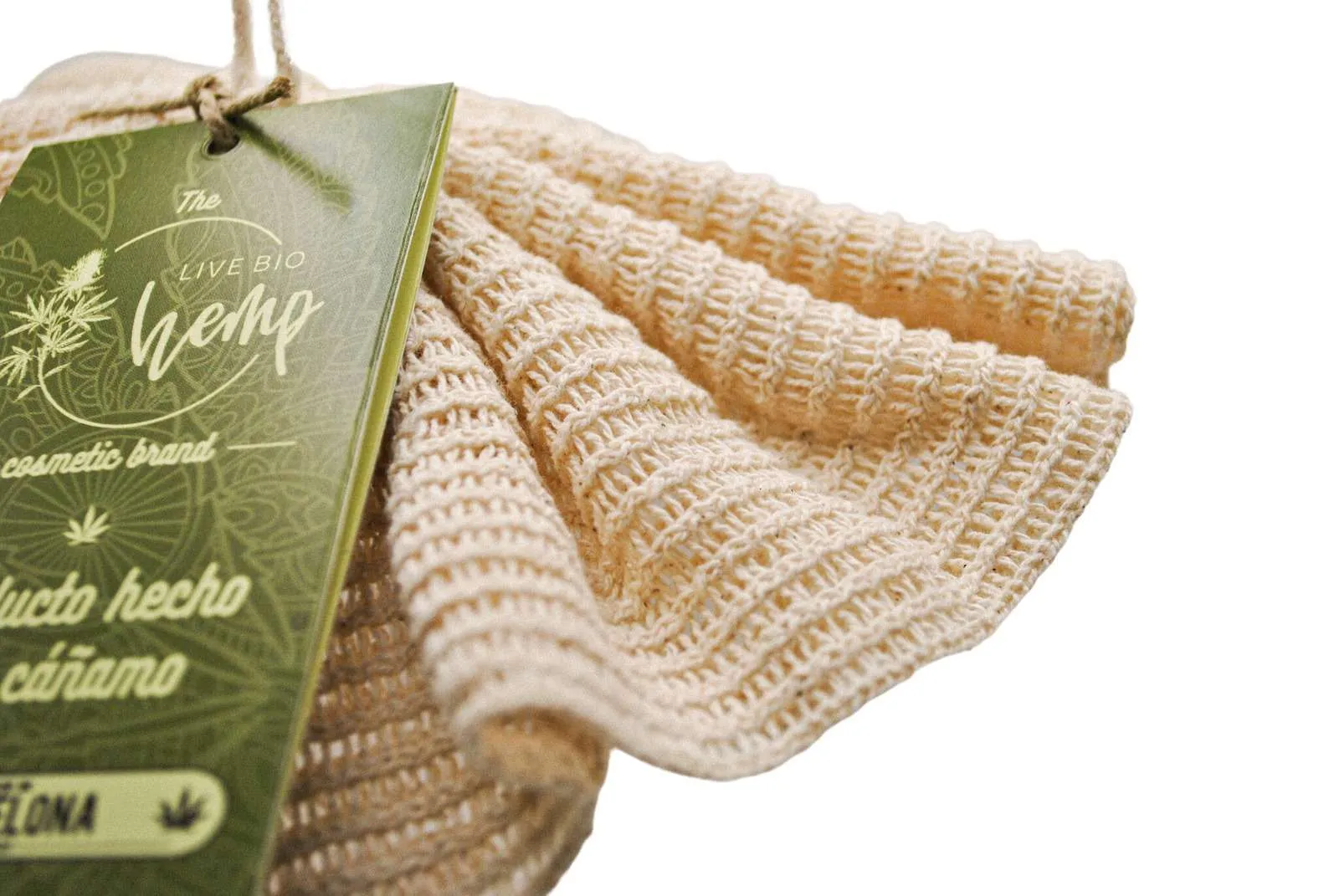 El cáñamo es conocido por tener una textura ligeramente áspera y exfoliante, lo que lo hace ideal para discos exfoliantes, esponjas o guantes de baño. Ayuda a eliminar células muertas de la piel y a estimular la circulación, dejando la piel suave y renovada.